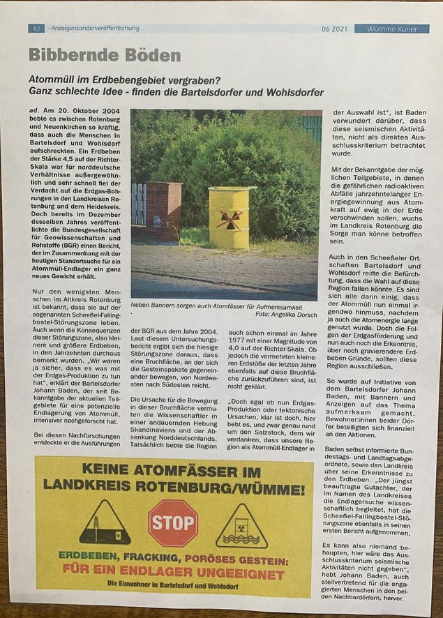 Der Zwischenbericht für Teilgebiete führt ab Seite 233 mögliche Endlagerstätten in Landkreis Rotenburg auf.
