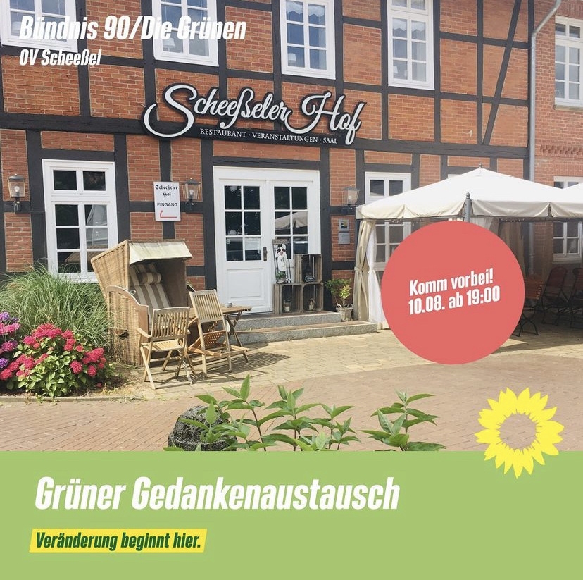 Herzliche Einladung zum grünen Gedankenaustausch am 10.8.21 um 19 Uhr um Scheeßeler Hof.